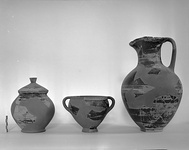 | Description: | Fragmentary. Offset rim with reserved band inside and out. Trace of handle and rim to shoulder. Restored in plaster. | |