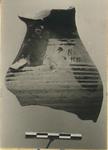 | Description: | Neckless oinochoe. Most of rim, handle and base missing. Trefoil mouth, band handle. Banded to handle, solid above, but long panel with untidy zigzag and birds. Worn black glaze. | |