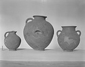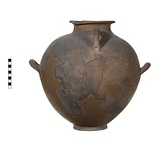 | Description: | Wall and rim fragments missing; restored. Large ovoid micaceous ware hydria; ring foot; flat-topped rim. Heavily incised around the rim: <graphic> Cf. Agora XII, no. 1594. | |
