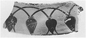 Description:   Single fragment preserves part of rim of a very large dinos or column krater. On top, lotus buds. On outer face rosettes. Closed buds outlined in red. Red line inside mouth.