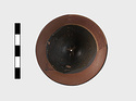 | Description: | Much of rim missing. No foot. Flat bottom. Red inside lip. | |