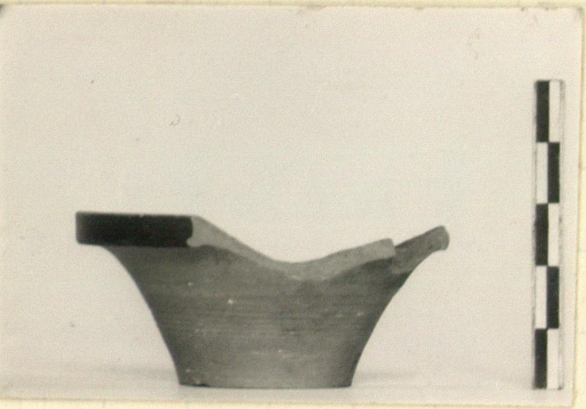 | Description: | Much of rim missing. No foot. Flat bottom. Red inside lip. | |
