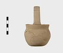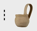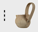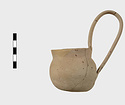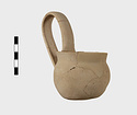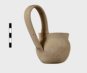 | Description: | Some of lip missing; restored. Rounded bottom. High swung handle. Pale buff clay. Unglazed; handmade. Argive Monochrome. | |