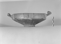 Description:   Mended from many fragments. Pieces missing throughout. Restored in plaster. Keel rim with rouletting outside.