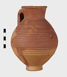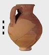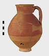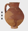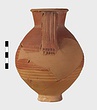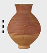 Description:   Fragments of body missing. Restored in plaster. Small ring foot; ovoid body; round mouth. Horizontal ribbing around middle of body.