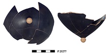 | Description: | Lower part only preserved. Trace of handle. Reserved knob at bottom. Thin fabric; good glaze inside and out. | |