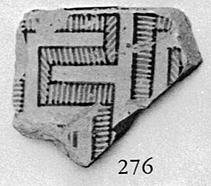 | Description: | Upright rim, glazed on top; maeander outside. Brown glaze. | |