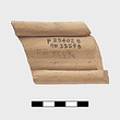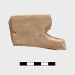 Description:   a) Band bordered by rolls. Broken at both ends. Lines and zigzags in center, oblique lines on sides. Handle?