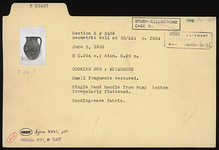 | Description: | Small fragments restored. Single band handle from rim; bottom irregularly flattened. Cooking ware fabric. | |