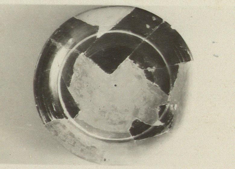 | Description: | Mended from many piecees; nearly half restored in plaster. A deep plate with a broad, slightly flaring rim. Reserved: a narrow band at junction of rim and bottom of plate inside; outside, all. On the bottom a long foot ring, and above it a small step. Cf. Agora XII, no. 1006. | |