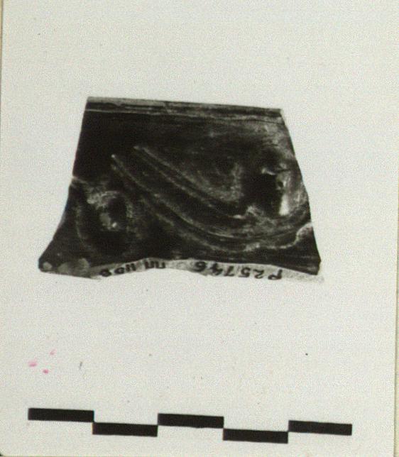 | Description: | Bit of rim of thin-walled cup. Low conical projections with stems from relief decoration below rim. Black glaze. Gray clay. ADDENDA North Italian [JWH]. | |