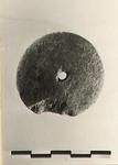 | Description: | Chips missing from one side. Flat bottom; shallow convex top. Clay gray at core, light brown at surface. | |