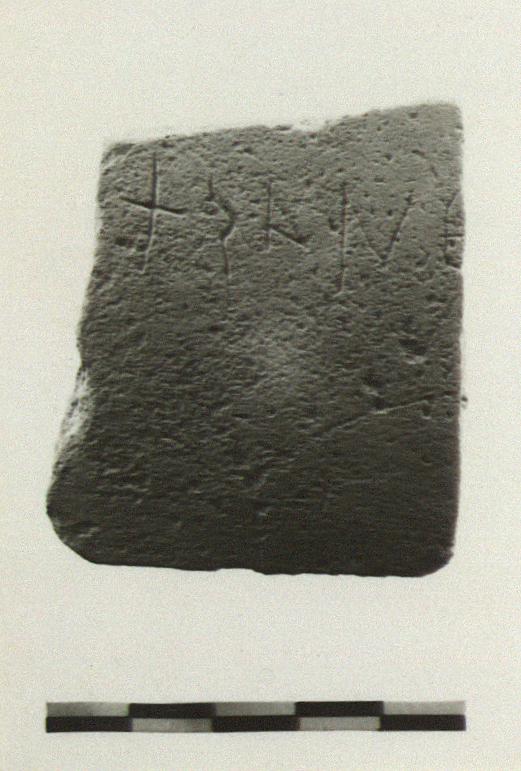 | Description: | Wall fragment from plain jar. Inscribed outside: <graphic> Micaceous pinkish-buff clay. | |