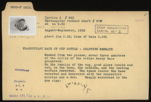 | Description: | Mended from two pieces; about three-quarters of the circle of the rather heavy base preserved. On the remains of the cup good glaze inside and out; the outside and the resting surface of the base reserved. The space inside the base reserved and decorated with two concentric circles and a dot. Deeply scratched in the dry clay on underside of base: <graphic> | |