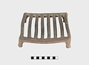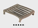 Description:   Mended from many fragments. Roughly oblong grill, resting on four legs.