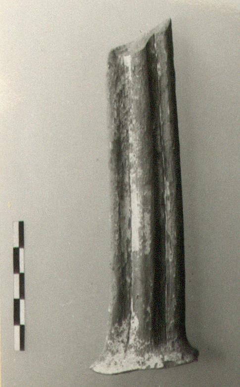 | Description: | Straight piece with lower end preserved. Tripartite. Very micaceous pale buff clay, chalky white fugitive ground. No comparable handle for height and width among Agora lagynoi. | |