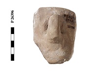 Description:   Complete mold. Head in pointed cap. The back roughly finished off by hand, with a substantial finger-grip.
