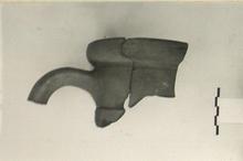 | Description: | Mended from two pieces. Note offset of neck near lower edge of fragment. Neck and top of one handle preserved. Reddish clay with some white bits; buff surface. No smear. Series of P 23377, and cf. P 24901; fragments from pre-Persian fills. | |
