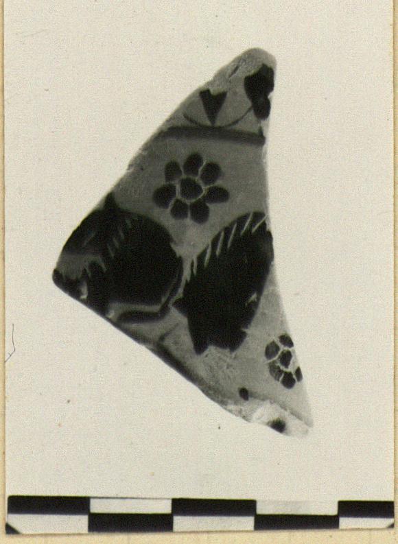 | Description: | Fragment from a closed pot; broken all around. Two zones: 1) crane to left with wings spread; 2) chain of buds, upwards. White (or red?) for stripes on wings. | |