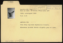 | Description: | Toe of amphora with very deep cup-like depression beneath. Micaceous pinkish fabric slightly gray at core. | |