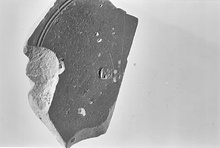 | Description: | Part of foot and floor preserved. Ring foot, high and flaring. Stamp in floor. Firm glaze, chipped. Pink clay. Arretine. | |