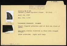 | Description: | Single fragment preserves part of foot and floor of plate. Low foot; circles rouletted on floor with stamped design. Glaze scratched. Light buff clay. Pergamene. | |