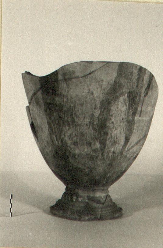 | Description: | Upper part and part of foot missing. Tall, slender pot with high, moulded foot. Athlete facing, holding palm(?). Stele or column at left. Beyond that, a woman right (lower part of skirt only) with a basket(?) before her on the ground. The hairiness of the athlete indicated by incision. White touches added to the reddish-brown glaze. White slip. ADDENDA Looks Roman. For a possible clue as to entire shape see inscription with relief vases at top in Graindor (1924), Album d'inscriptions attiques d'époque impériale, pl. LXXXII (262/3 A.D.; IG II2, 2245) (GRE). Special product, mid(?)-3rd. c. A.D. (JWH). | |