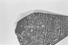 | Description: | Fragment from floor of a plate. Band of rouletting within double grooves. Lustrous red glaze, worn. Red clay. Arretine. | |