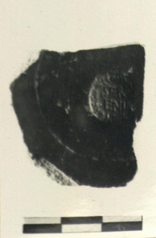 | Description: | Fragment from foot. Small open sigillata bowl with low ring foot. At center of floor a circular stamp: SERENI Red glaze inside and out, not very lustrous. | |