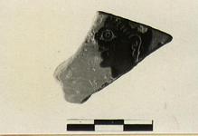 | Description: | Fragment from wall of open vase. Fairly thick wall, glazed inside. Head of youth to left, large eye and ear. Apparently no added red. | |