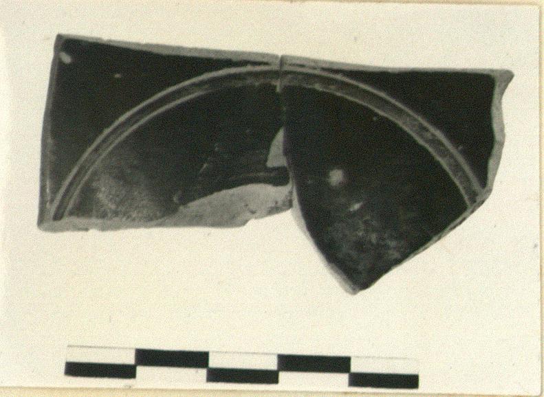 | Description: | Two joining fragments from base and wall. Hemispherical bowl, grooved outside. False ring foot. On exterior, wheel run grooves beneath glaze. Inside, part of a wheel run circle for medallion beneath glaze. Glazed overall. Same pot as P 26888. | |