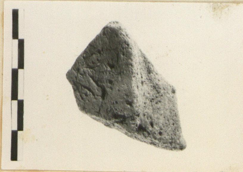 | Description: | a) Base fragment with irregular impressions on bottom as if from grass. b) Similar impressions but on exterior or interior? Not made from woven mat. Gritty buff clay, soft with gray core. May not come from same pot. | |