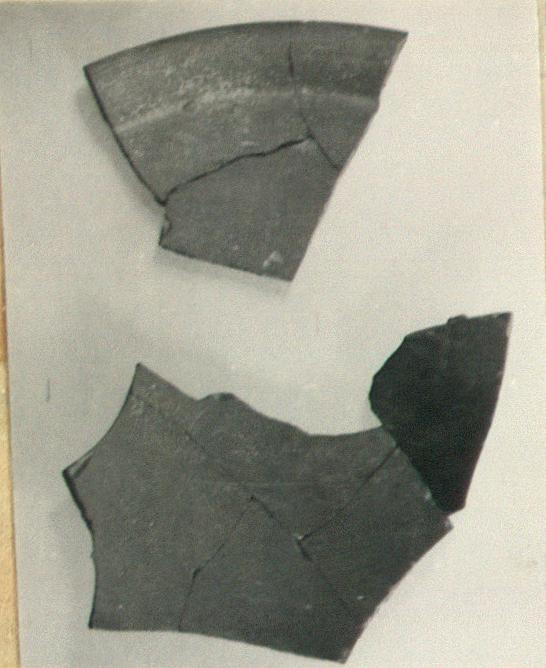 | Description: | Fragment of "Late Roman Red" dish. About one-third preserved; mended into two pieces. Late Roman dish fragments. a) Rim to wall preserved in three joining fragments; base missing. Chipped around the rim. Accidental streaks of slip on outside. b) Added Jan 1964. Five joining fragments of floor with foot. Curving floor, low bevelled foot. The fragment from container 125-126 is burnt dark brown. (JWH) | |