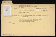 | Description: | Base fragment with rim and resting surface reserved. Inscribed above and beneath; upper inscription illegible. | |