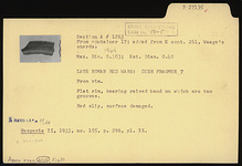 | Inventory Number: | | P 27135 | | Section Number: | | Α 1263 | | Title: | | Dish Fragment | | Category: | | Pottery | | Description: | | Fragment of flat rim bearing raised band on which are two grooves. Red slip, surface damaged. Late Roman Red Ware. | | Notes: | | Added from E. cont. 261, Waage's sherds. | | Negatives: | | Leica | | PD Number: | | PD 3083-101, DA 10002 | | Dimensions: | | Max. Dim. 0.103; Est. Diam. 0.40 | | Chronology: | | Ca. 320-340 | | Date: | | 1964 | | Section: | | Α | | Lot: | | Lot Α 17 | | Period: | | Roman | | Bibliography: | | Hayes (1972), no. 20, p. 99. | | | | Hesperia 2 (1933), no. 155, p. 296, pl. IX. | | | | Agora XXXII, no. 1056, fig. 33. | | References: | | Publication: Agora XXXII Publication: Hesperia 2 (1933) Drawing: PD 3083-80; PD 3083-81; PD 3083-82; PD 3083-83; PD 3083-84; PD 3083-85; PD 3083-86; PD 3083-87; PD 3083-88; PD 3083-89; PD 3083-90; PD 3083-91; PD 3083-92; PD 3083-93; PD 3083-94; PD 3083-95; PD 3083-96; PD 3083-97; PD 3083-98; PD 3083-99; PD 3083-100; PD 3083-101; PD 3083-102; PD 3083-103; PD 3083-104; PD 3083-105; PD 3083-106; PD 3083-107; PD 3083-108; PD 3083-109; PD 3083-110; PD 3083-111; PD 3083-112 (DA 10002) Lot: Α 17 Notebook: Α-9 Notebook Page: Α-9-73 (pp. 1869-1870) Card: P 27135