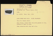 Rim of large plate. Flat floor, broad flat rim with groove at lip. Groove at edge of base.