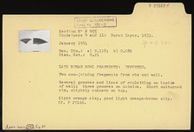 | Description: | Two non-joining fragments from rim and wall of Late Roman bowl. Several grooves and lines of rouletting on inside of wall; three grooves on outside. Short out-turned rim, slightly concave on top. Light orange clay, good light orange-brown slip. Imported. Cf. P 27166. | |