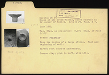 | Description: | From the bottom of a large pithos. Foot and beginning of wall. Narrow foot concave underneath. Coarse clay, pink to buff, with bits. | |