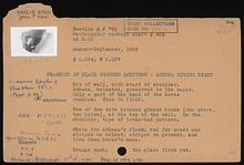 | References: | Publication: Agora XXIII Publication: Hesperia 15 (1946) Publication: Hesperia 62 (1993) Publication Page: Agora 23, s. 239, p. 223 Publication Page: Agora 23, s. 356, p. 340 Publication Page: Agora 23, s. 481 Image: 2012.51.1063 (XXV-98) Image: 2010.18.0673 (XXV-98) Deposit: G 6:3 Deposit: G 6:3.1 Notebook: Α-8 Notebook Page: Α-8-75 (pp. 1499-1500) Notebook Page: Α-8-76 (pp. 1501-1502) Card: P 2722 |