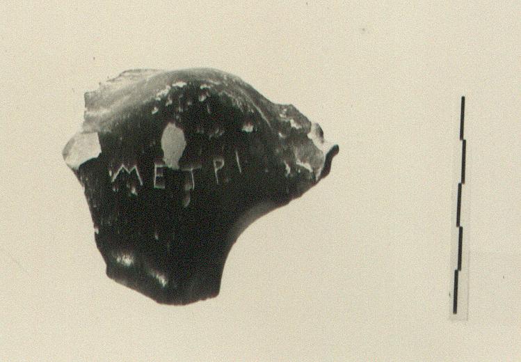 | Description: | Fragment from top of handle. Incised on outer part of top: Μ Ε Τ Ρ Ι | |