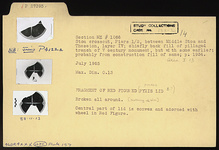 | Context: | Stoa cross cut, piers 1 and 2, beween Middle Stoa and Theseion, layer IV. Chiefly backfill of pillaged trench of 5th. c. monument, but some earlier; probably from construction of same. | |