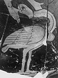 A) Chiton-clad girl with short hair caresses a phallos-headed bird.