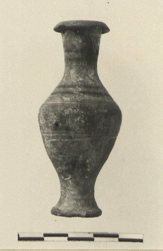 | Description: | Fusiform shape. Intact. Plump shape; pairs of purple bands on shoulder and neck. Typical of the many fragmentary examples from this deposit. | |