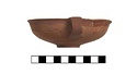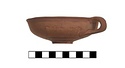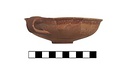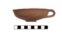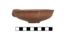 | Description: | Missing: handle, half of rim, three-fourths of bowl. Restored in plaster. Similiar to P 27452 except for raised button in center of bowl, foot broader and lower, rim more everted. Glazed on rim, bowl and under foot plain. Coarse stippling between bands on bowl, two stripes above solid glazed foot. Red-buff clay with lumps and grit, wheel marks inside not smoothed; orange-red glaze much worn. Furumark, MP type 219 (LH II b-III A:1), motive 77 no. 2, LH III A:1. Stripes above foot indicate date early in LH III A:1. | |