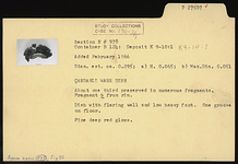 | Description: | About one-third preserved in numerous fragments. Fragment b) from rim. Dish with flaring wall and low heavy foot. One groove on floor. Fine deep red gloss. | |