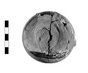 Fabric, especially of box, very brittle and poorly baked. Buff with brown glaze, largely peeled. Lid better. Black glaze, firm.