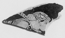 | Description: | Broken all around. Head and shoulder of a youth looking right. Front part of face is missing. He is wearing an animal's head as a cap, perhaps a leopard. | |