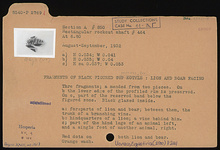 | Description: | Three fragments: a) Mended from two pieces. Foreparts of lion and boar; between them, the trunk of a branching vine. Red dots on both lion and boar. b) Lower edge of the profiled rim. Hindquarters of a lion; a vine behind him. c) Part of the reserved band below the figured zone and part of the hind legs of an animal left, and a single foot of another animal, right. Orange wash. Black glazed inside. | |