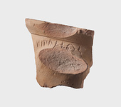 | Description: | Fragment from the rim of a storage amphora with the upper attachment of one handle. Incised under the rim: <graphic> Coarse pinkish clay with gray core; yellow buff slip. | |