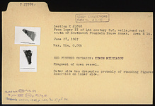 | Description: | Red figure fragment of open vessel. Outer side has draperies probably of standing figures. Inscribed on inner side. | |